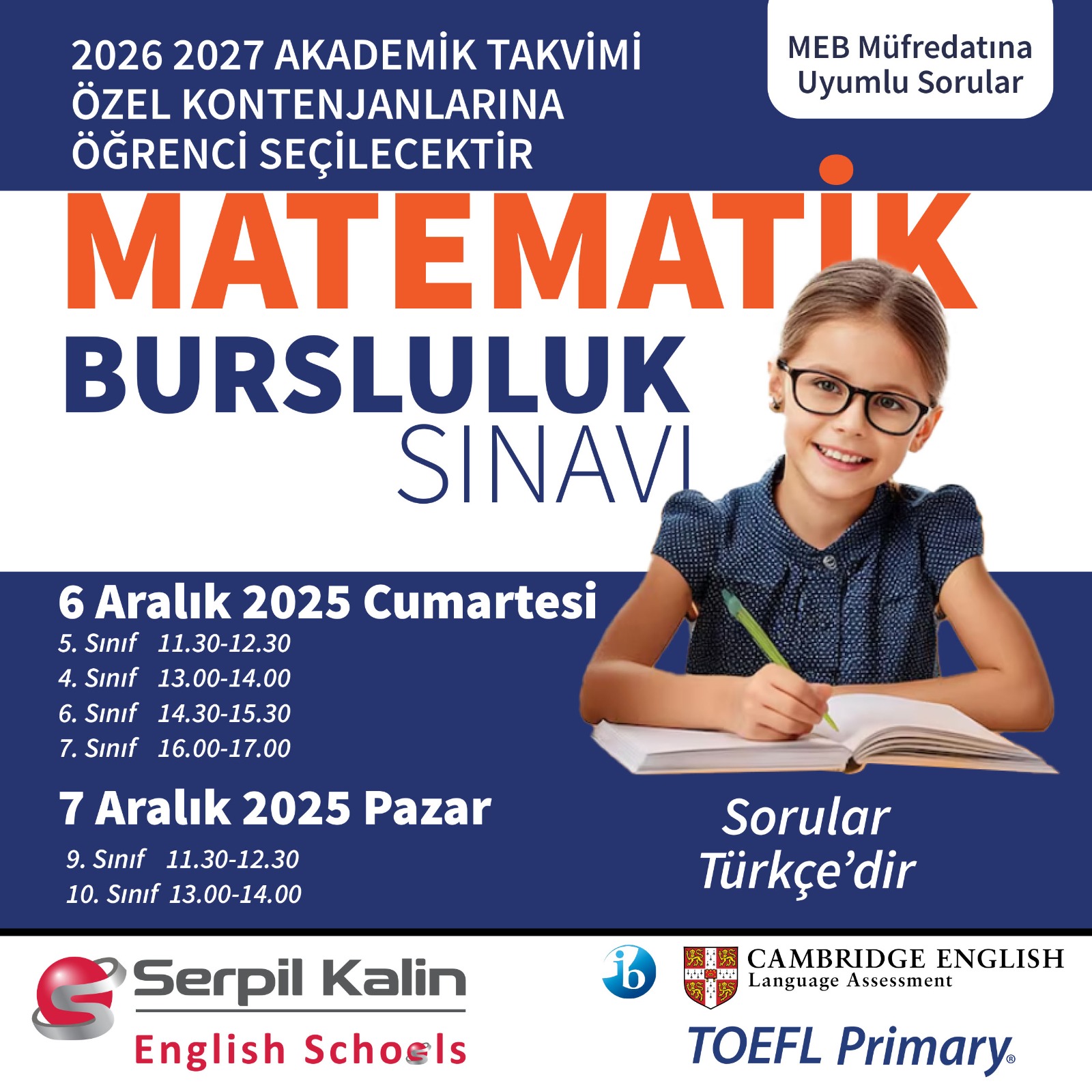 Matematik soruları MEB müfredatına uygun sorulardan oluşmaktadır. En iyiler arasından ise IB Matematik Uluslararası Baccalorya sistemine öğrenci seçilecektir. İngilizce bölümündeki sorular Cambridge Müfredatına uygun sorulardan oluşmaktadır. Matematik bölümünden burs kazanan öğrenciler YENİ NESİL SORULAR PİSA SİSTEMİ VE MİLLİ EĞİTİM BAKANLİGİ MAARİF MODEL SİSTEMİNE uygun olarak eğitimini sürdürecektir. Ayrıca ayrıcalıklı olarak IB matematik özel programına da dahil olacaklardır.
