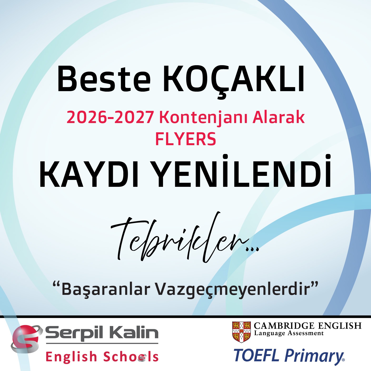 Kurum içinde Cambridge Reported Derecesine giren Öğrencilerimizi Tebrik Ederiz.